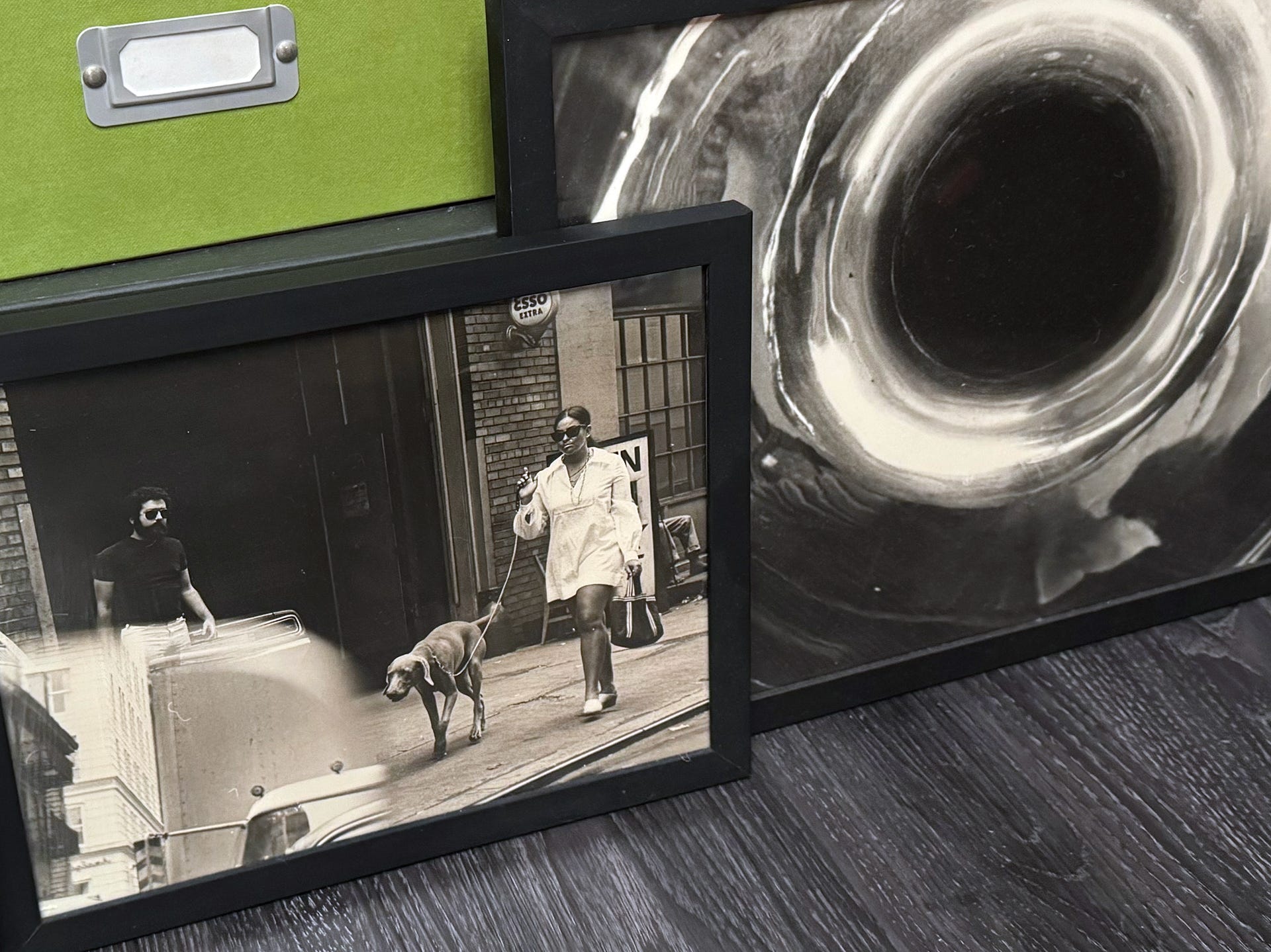 Now I own Bob’s Blue Note-worthy shot of a brass horn, as well as a vibey double exposure (blurry car mirror reflection?) of a woman in sunglasses walking her dog in front of a dude who could have worked backline for Steely Dan.