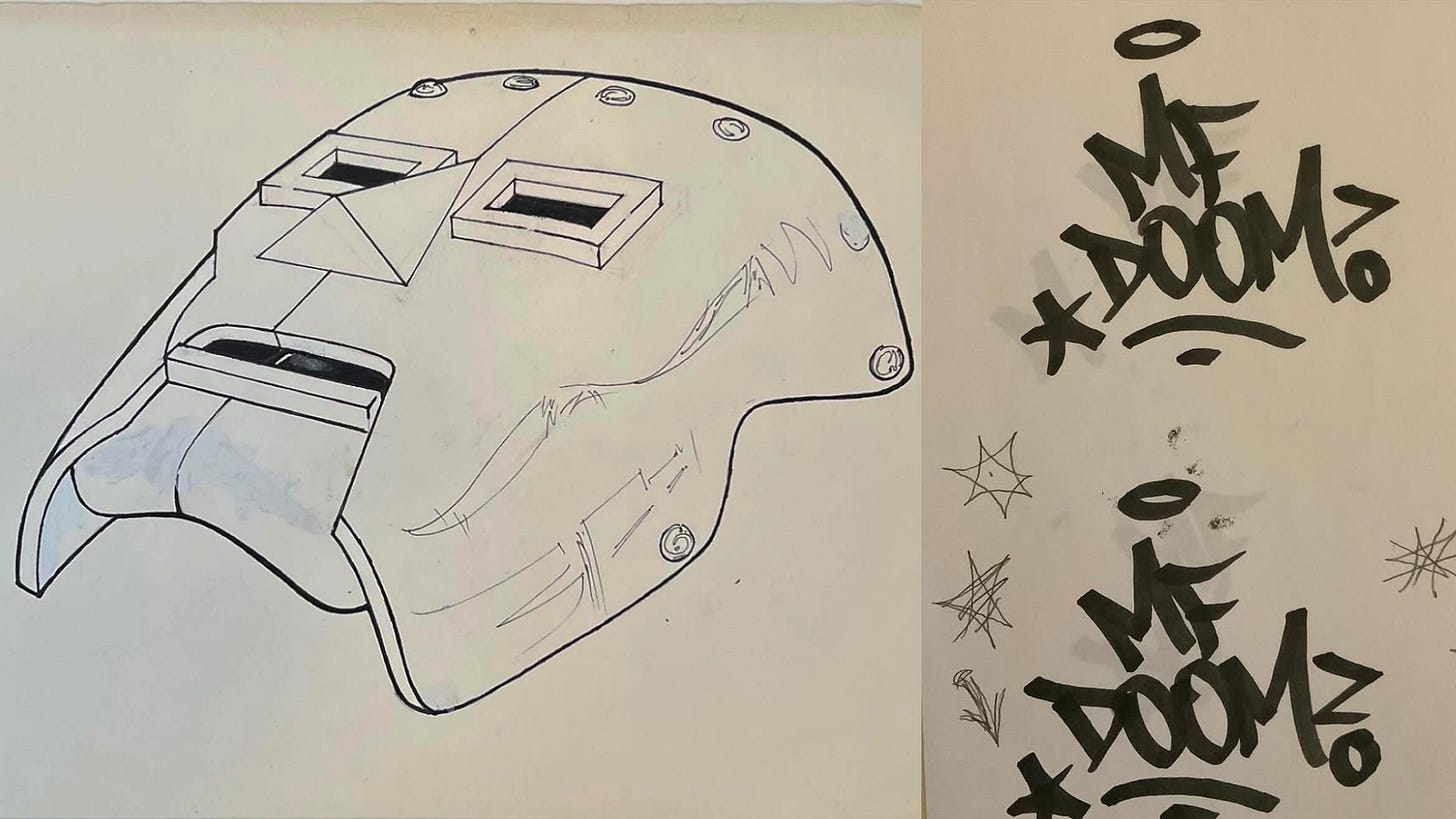 MF DOOM design sketches — incredible archive material and background detail from KEO XMEN, graf legend (and Lethem brother) behind DOOM’s earliest graphics. Love this one comparing consonant heights to fighting philosophies (“There is no rigid set pattern or rule, letters adapt and improvise situationally. Like you don’t box a short, aggressive, southpaw brawler the same way you would a tall, rangy, orthodox technician. You’d get knocked the fuck out…”) as well as the tacit acknowledgement that behind every iconic record sleeve, there’s somebody vectorizing ink scans and schlepping tech packs.